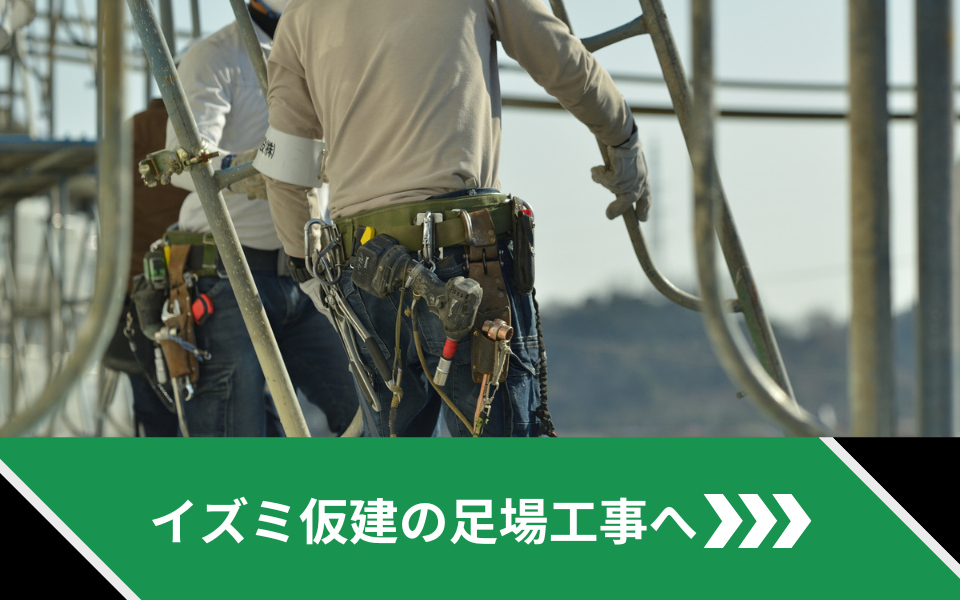 イズミ仮建は、「安全・誠実な足場工事で現場を支える」ことを使命に掲げ、